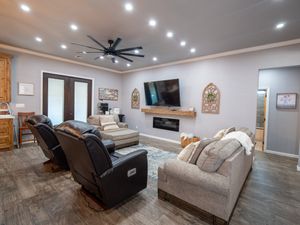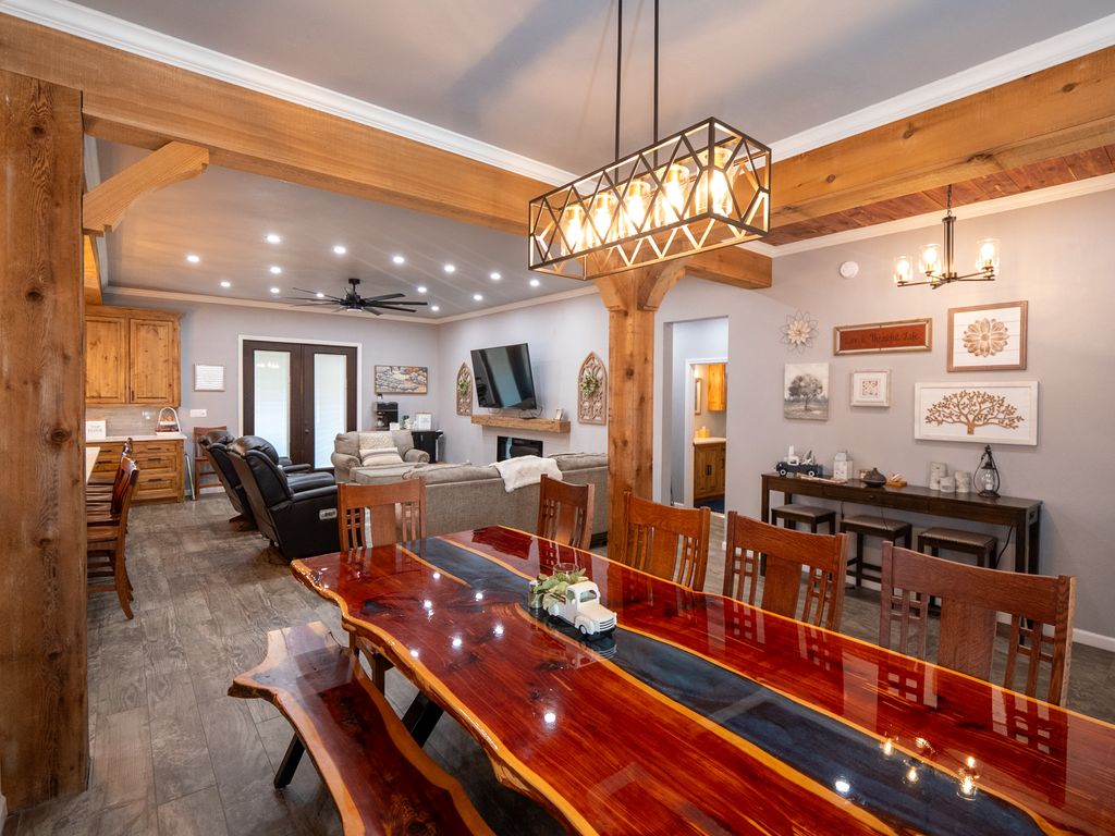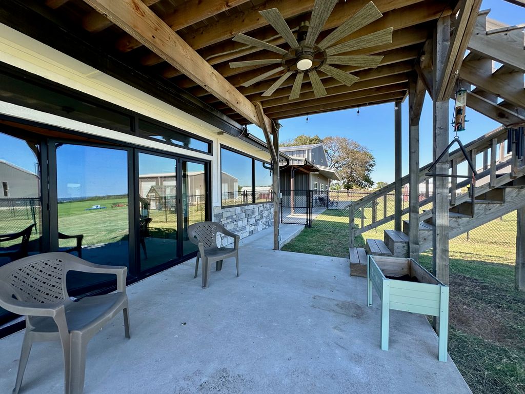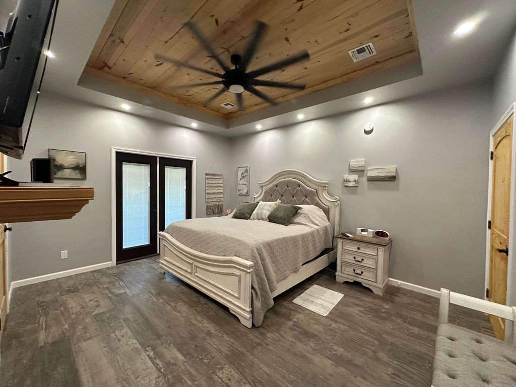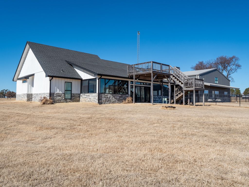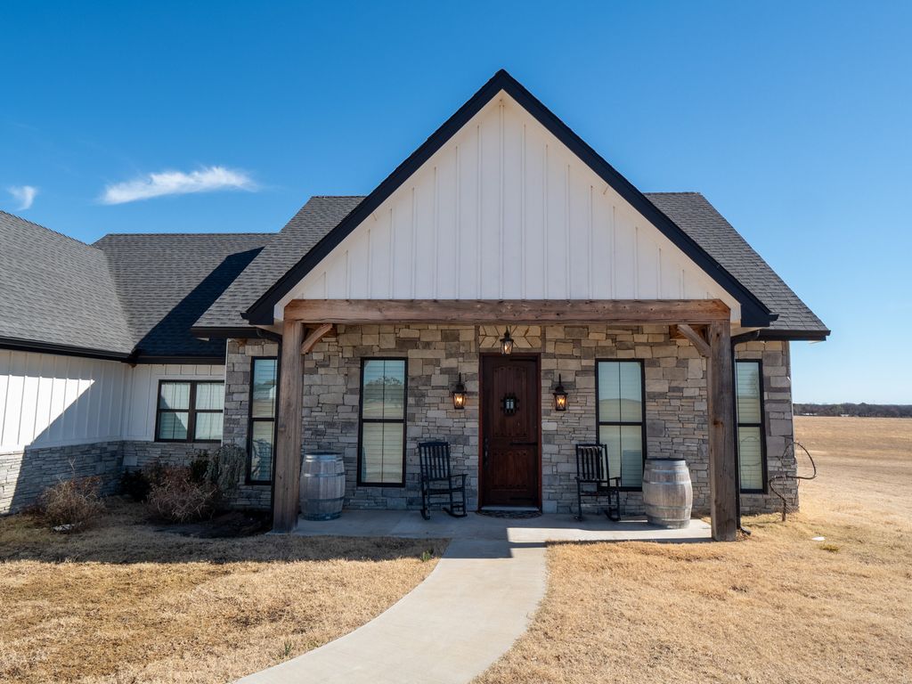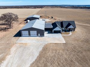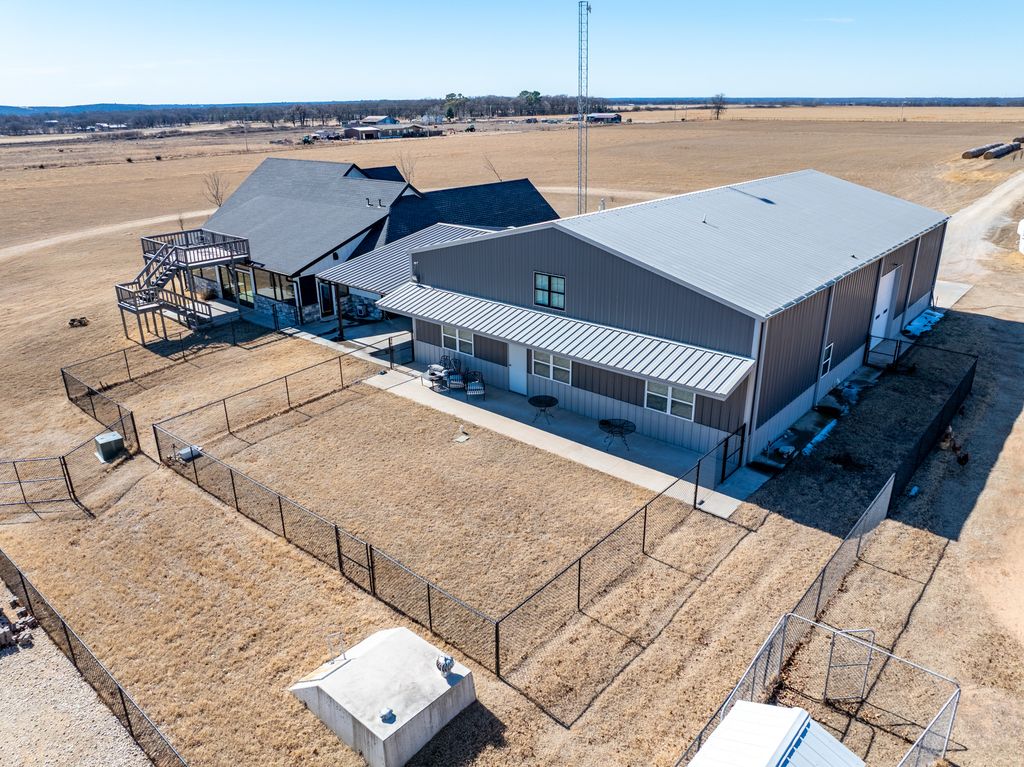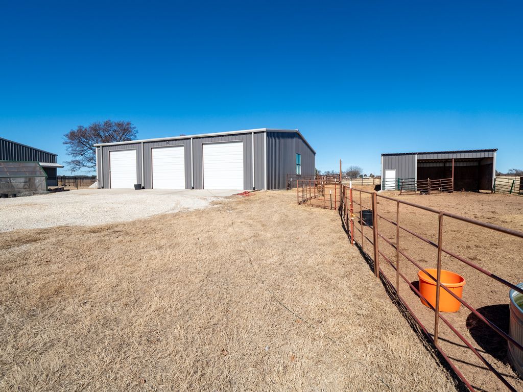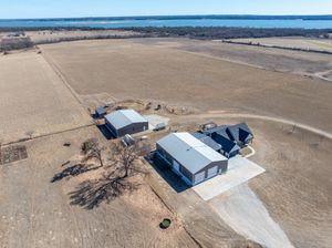 Exquisite Lake View Ranch on Lake Texoma – 71.71 Acres of Refined Country Living Experience the perfect blend of luxury and laid-back lake life on this breathtaking ranch overlooking Lake Texoma. This exceptional estate offers privacy, productivity, and remarkable development potential. The newly constructed main residence features an open-concept living, kitchen, and formal dining design ideal for entertaining. The home offers 3 spacious bedrooms and 3 full bathrooms, a walk-in pantry, oversized kitchen island, an incredible primary closet, fully enclosed back patio, and a two-story deck capturing panoramic lake views. The impressive 50x80 heated and cooled Shop Barndominium is designed for both comfort and recreation. It includes a wet bar, game area, 5 bedrooms, 2 full bathrooms, living room, laundry room, and a fully covered back patio—perfect for guests, extended family, or rental potential. An additional 50x27 rear shop barn offers three bay doors, concrete floors, and a heating system—ideal for equipment storage or workshop space. The land is both beautiful and productive, yielding approximately 220 round bales of hay annually. The property features rural and well water supply, underground utilities, and an automatic gated entry. The homes are privately situated toward the back of the property for maximum seclusion. Enjoy lake living with convenient access to a boat ramp and sandy beach just south at Sander’s Island View. Ideally located between Oklahoma City and Dallas, this property offers the serenity of country life with easy access to major metropolitan areas.
