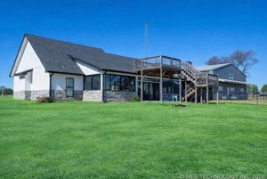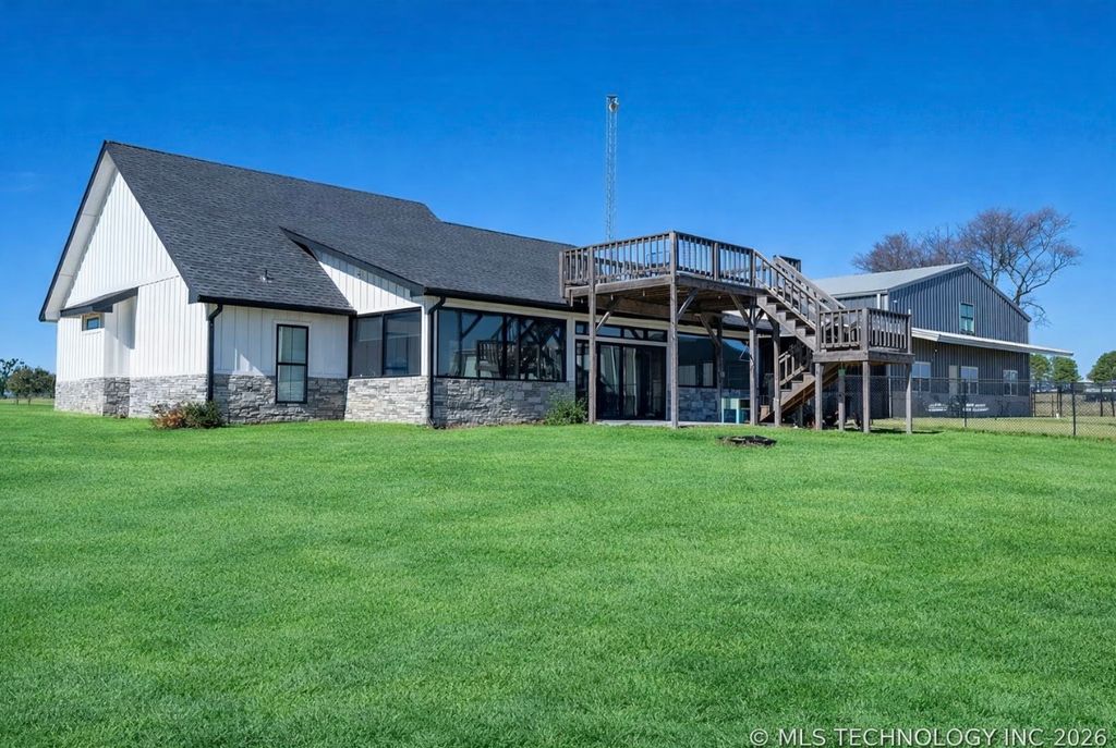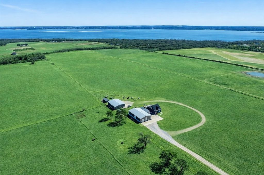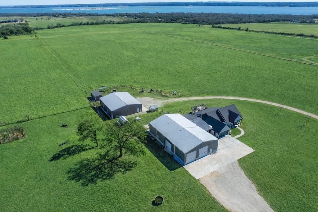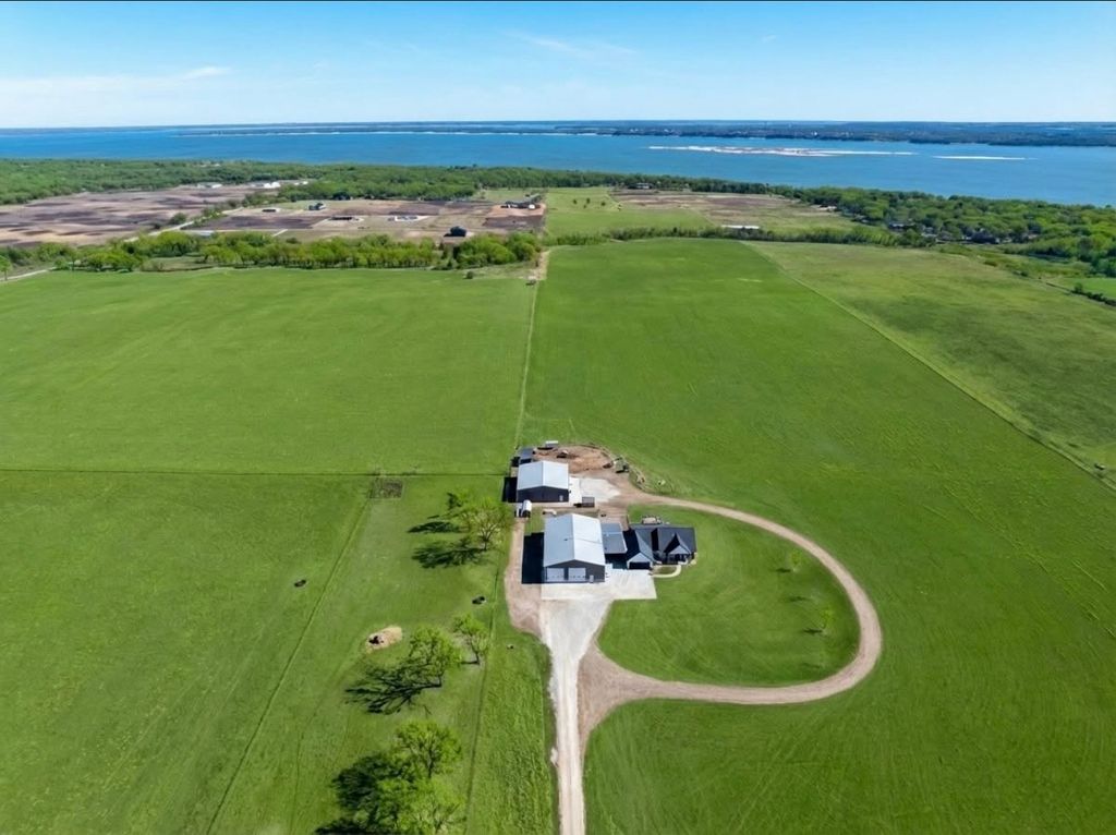 Exquisite Lake View Ranch on Lake Texoma – 71.71 Acres of Refined Country Living Experience the perfect blend of luxury and laid-back lake life on this breathtaking ranch overlooking Lake Texoma. This exceptional estate offers privacy, productivity, and remarkable development potential. The newly constructed main residence features an open-concept living, kitchen, and formal dining design ideal for entertaining. The home offers 3 spacious bedrooms and 3 full bathrooms, a walk-in pantry, oversized kitchen island, an incredible primary closet, fully enclosed back patio, and a two-story deck capturing panoramic lake views. The impressive 50x80 heated and cooled Shop Barndominium is designed for both comfort and recreation. It includes a wet bar, game area, 5 bedrooms, 2 full bathrooms, living room, laundry room, and a fully covered back patio—perfect for guests, extended family, or rental potential. An additional 50x27 rear shop barn offers three bay doors, concrete floors, and a heating system—ideal for equipment storage or workshop space. The land is both beautiful and productive, yielding approximately 220 round bales of hay annually. The property features rural and well water supply, underground utilities, and an automatic gated entry. The homes are privately situated toward the back of the property for maximum seclusion. Enjoy lake living with convenient access to a boat ramp and sandy beach just south at Sander’s Island View. Ideally located between Oklahoma City and Dallas, this property offers the serenity of country life with easy access to major metropolitan areas.